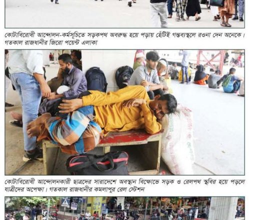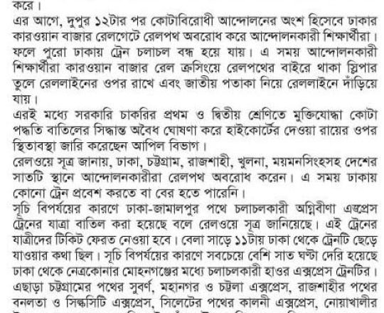 প্রথম আলো, ১২ জুলাই, রাজশাহীতে আজও রেলপথ অবরোধ করে শিক্ষার্থীদের বিক্ষোভ