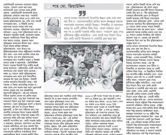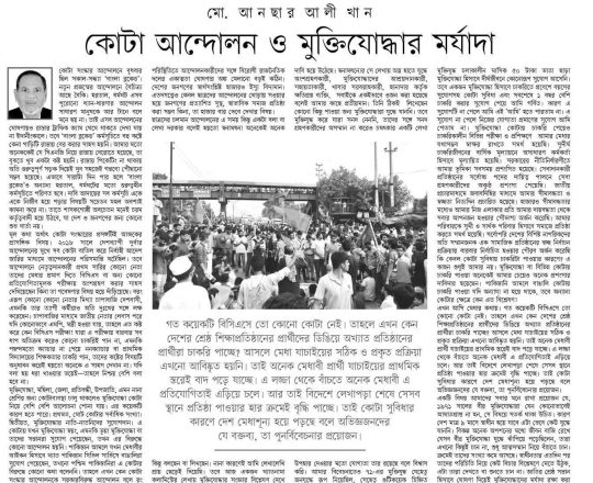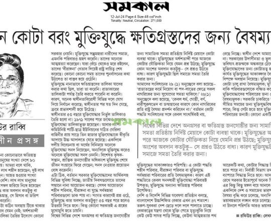 সমকাল, ১২ জুলাই ২০২৪, বর্তমান কোটা বরং মুক্তিযুদ্ধে ক্ষতিগ্রস্তদের জন্য বৈষম্যমূলক