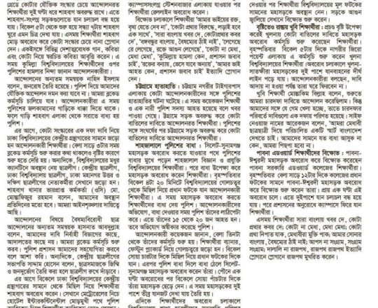 প্রথম আলো, ১২ জুলাই, চট্টগ্রামে বিক্ষোভ মিছিলে হাজারো শিক্ষার্থী