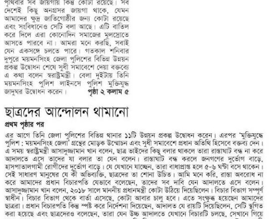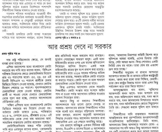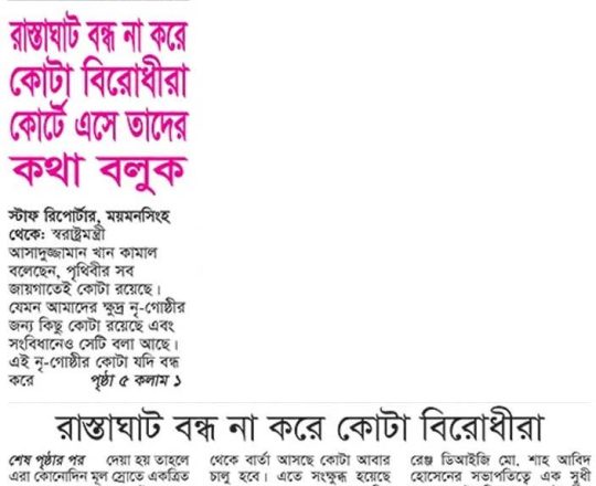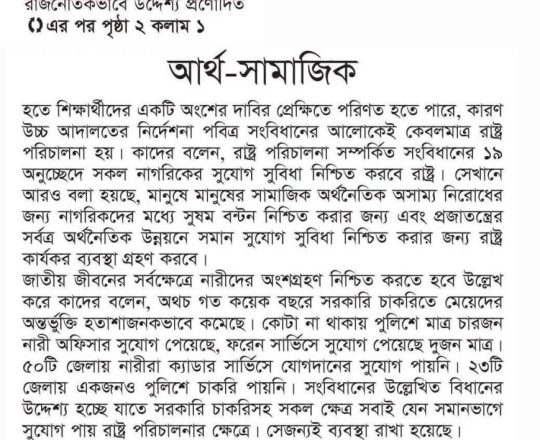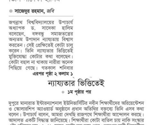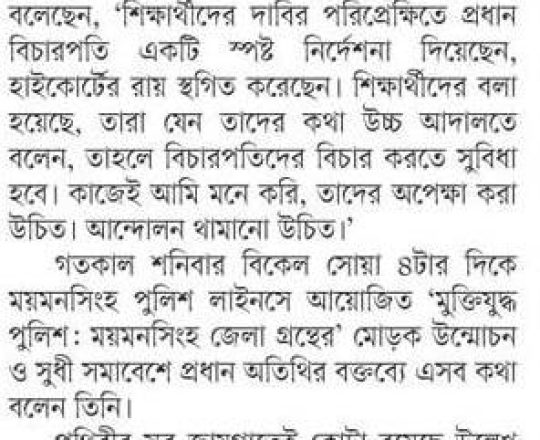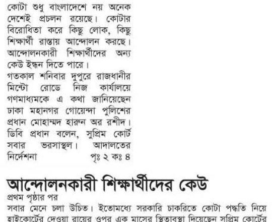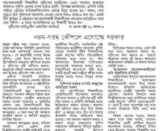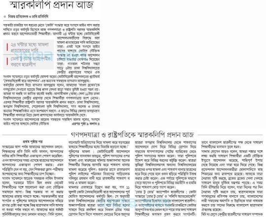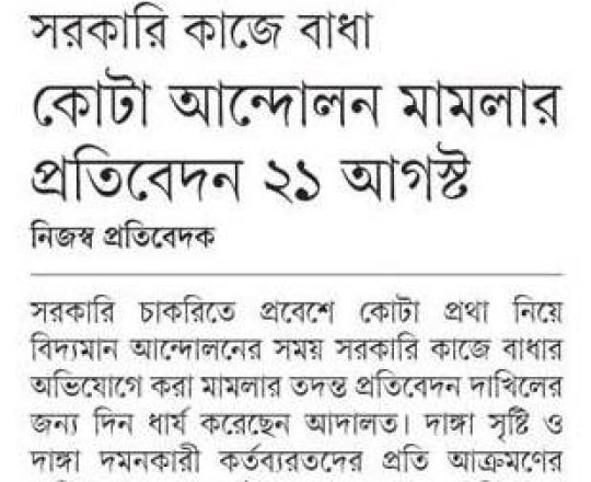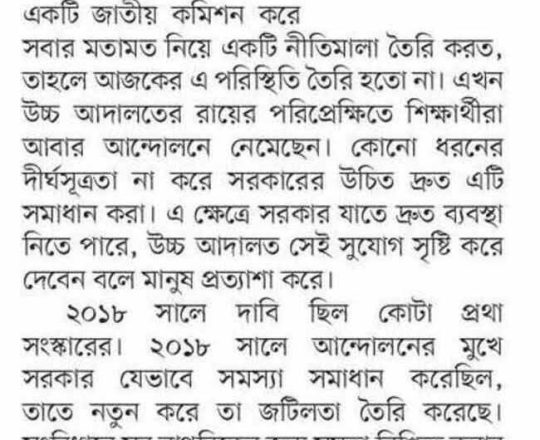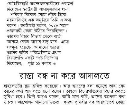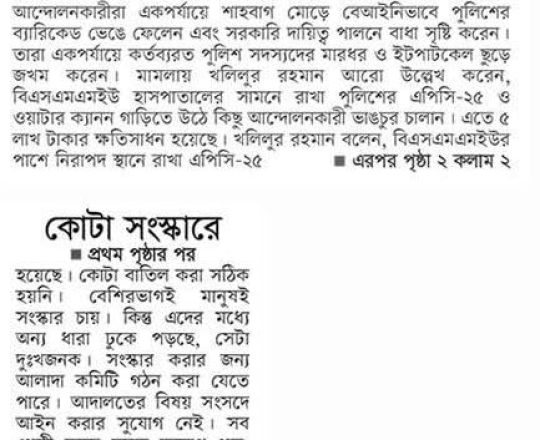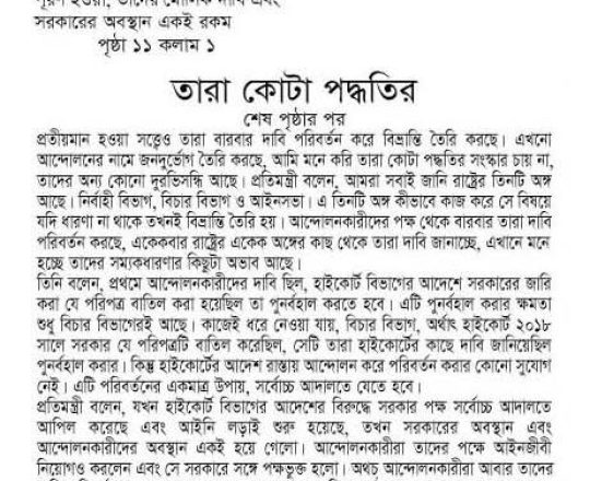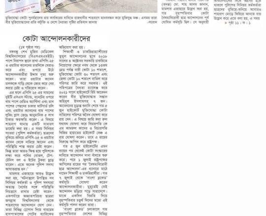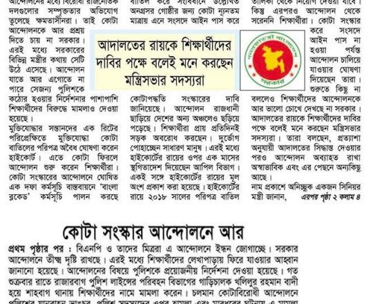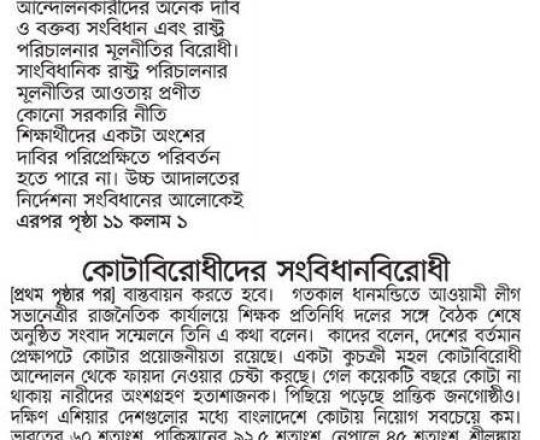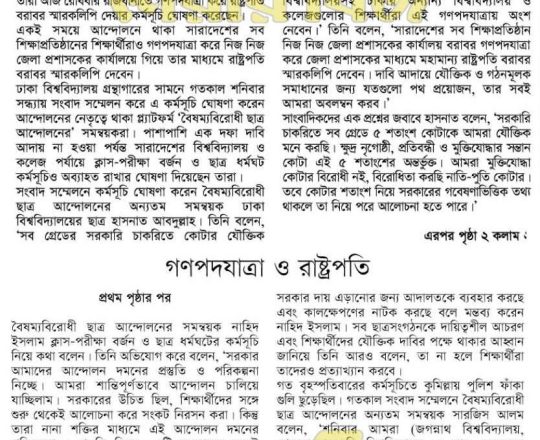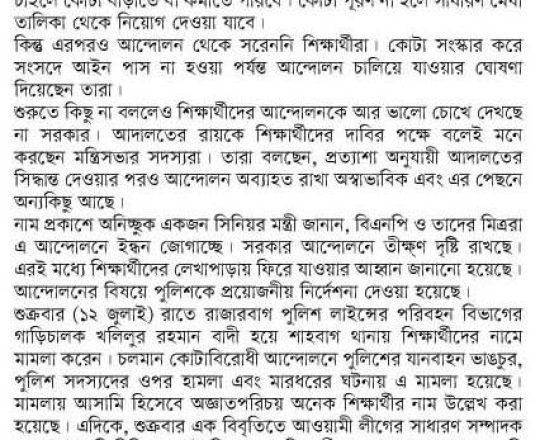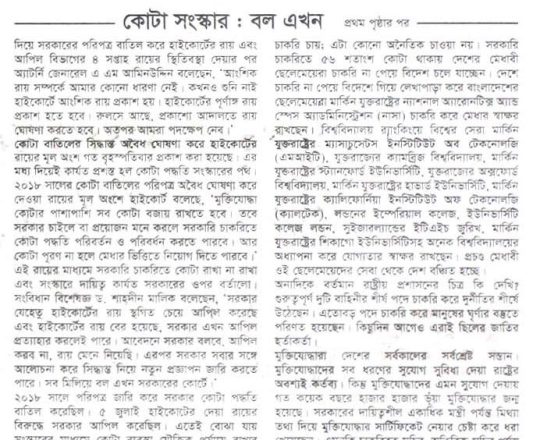 প্রথম আলো, ১৪ জুলাই, কোটা বাতিলের পরিপত্র অবৈধ ঘোষণার পূর্ণাঙ্গ রায় প্রকাশ