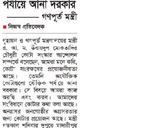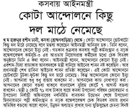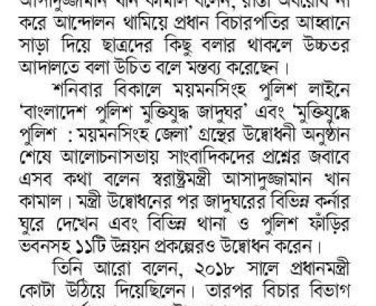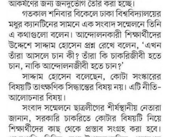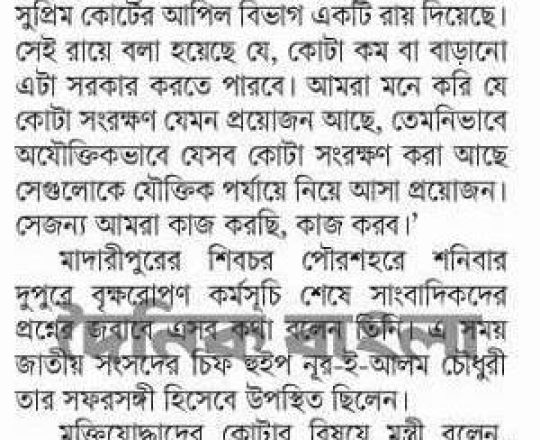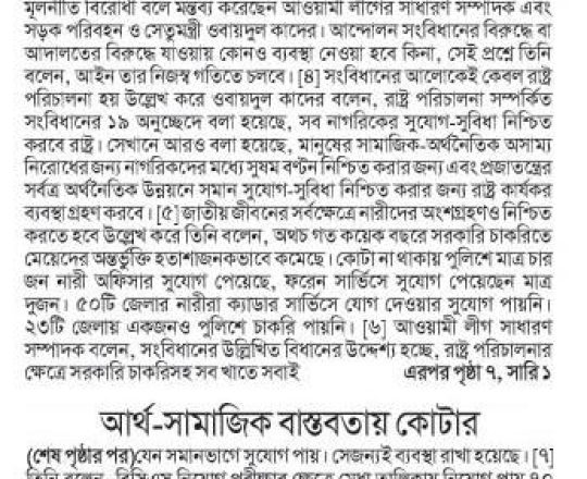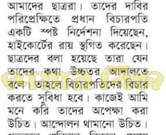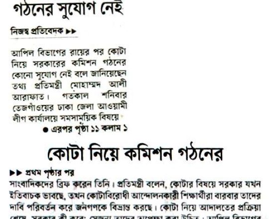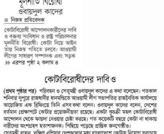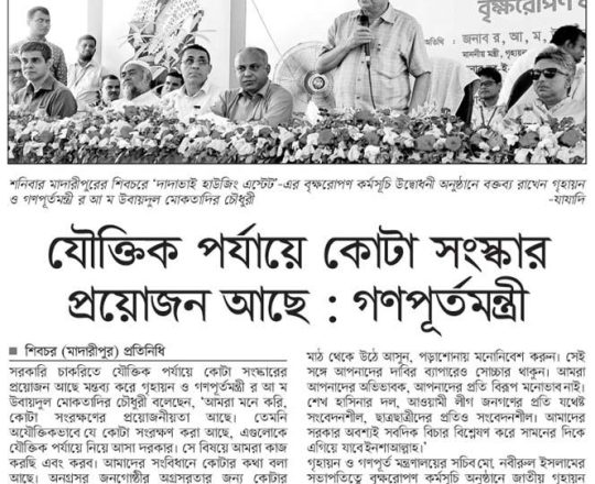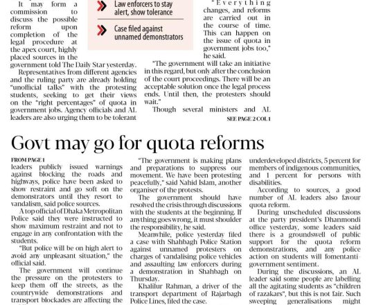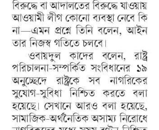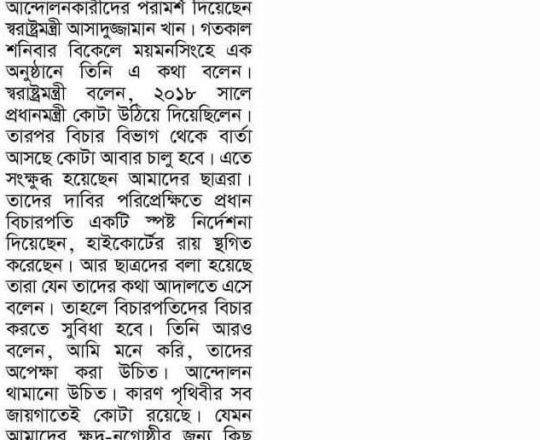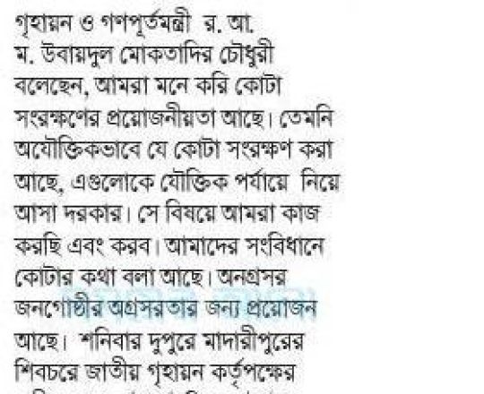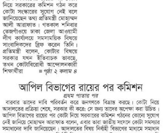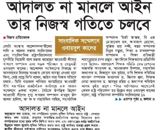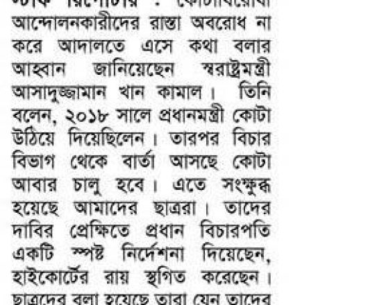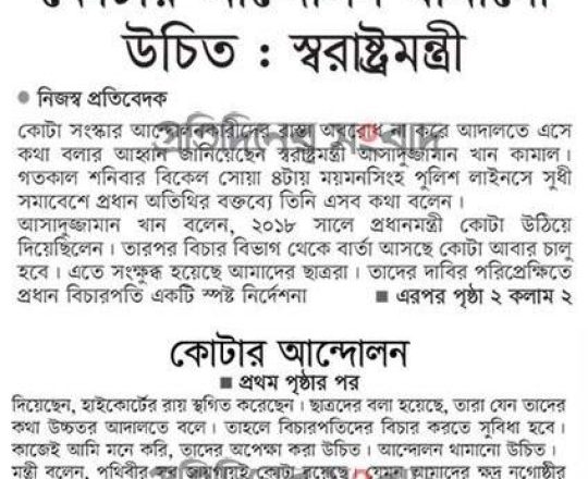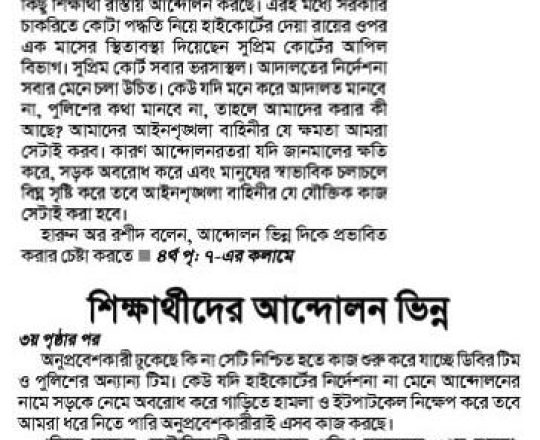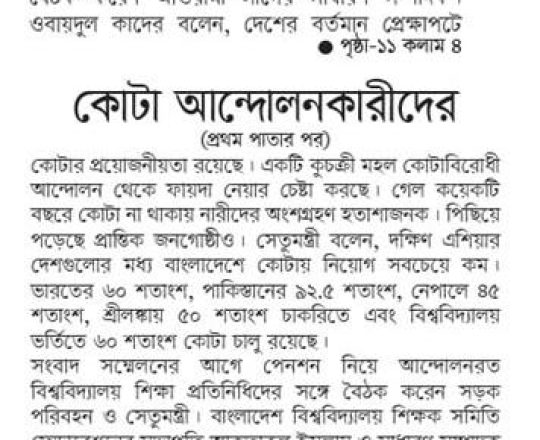 প্রথম আলো, ১৪ জুলাই, Govt won’t do anything on quota before Appellate Division’s verdict: Quader