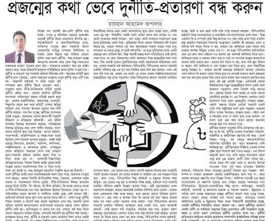 আজকালের খবর, ১৪ জুলাই ২০২৪, প্রজন্মের কথা ভেবে দুর্নীতি-প্রতারণা বন্ধ করুন