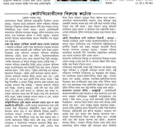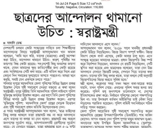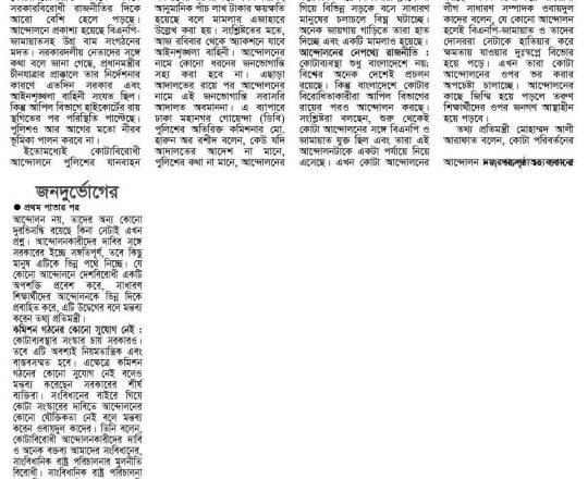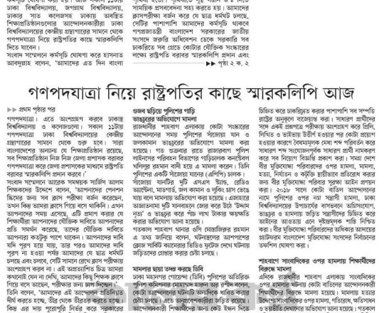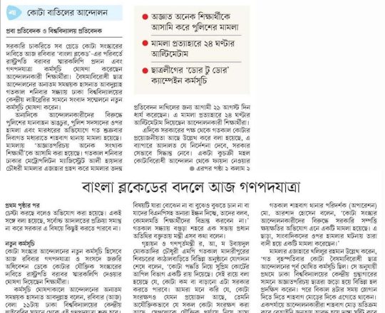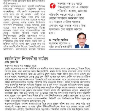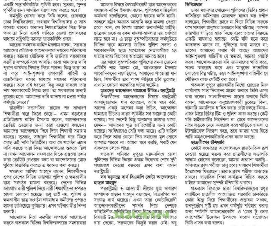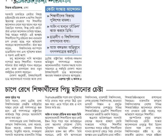 ভোরের পাতা, ১৪ জুলাই ২০২৪, কোটাবিরোধীদের বিরুদ্ধে মামলার প্রতিবেদন ২১ আগস্ট