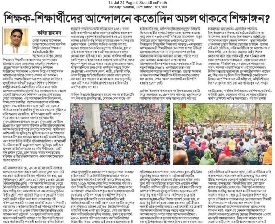 আমাদের অর্থনীতি, ১৪ জুলাই ২০২৪, শিক্ষক-শিক্ষার্থীদের আন্দোলনে কতোদিন অচল থাকবে শিক্ষাঙ্গন?