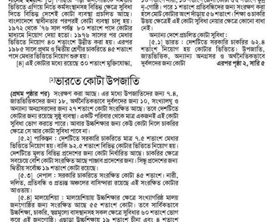 আমাদেরনতুন সময়, ১৪ জুলাই ২০২৪, ভারতে কোটা উপজাতি, জাতভিত্তিক, অন্যান্য অনগ্রসরদের জন্যে