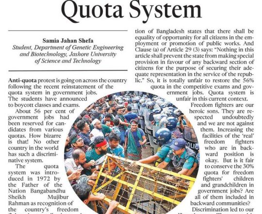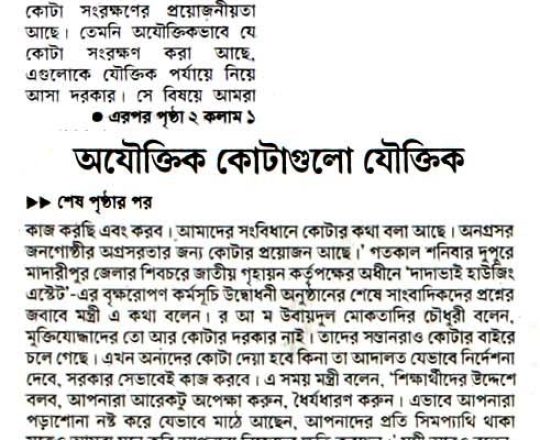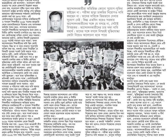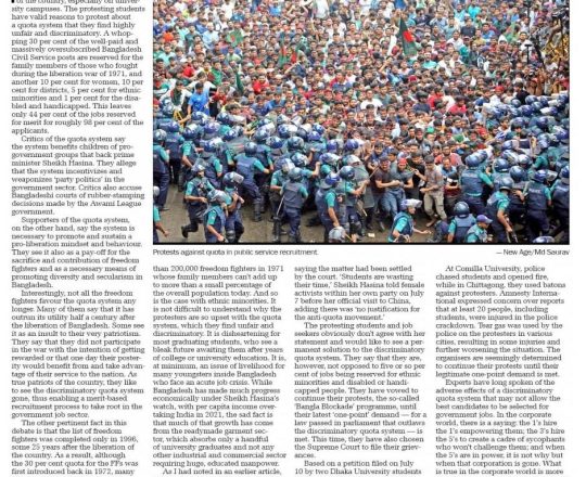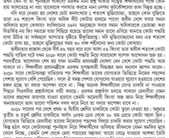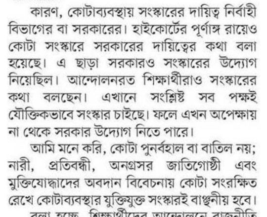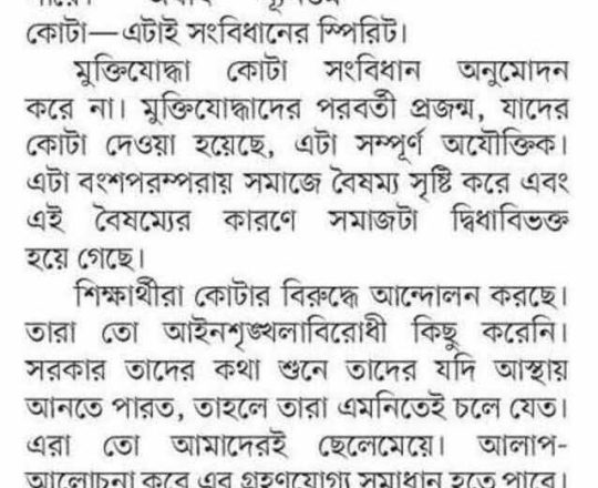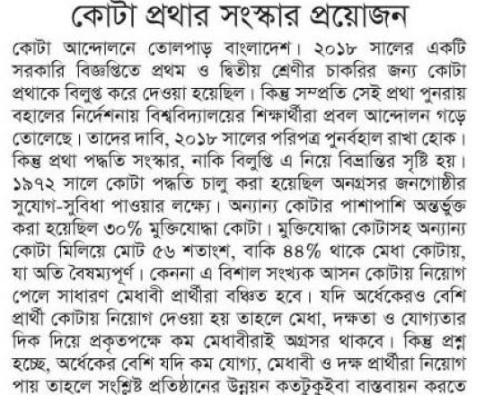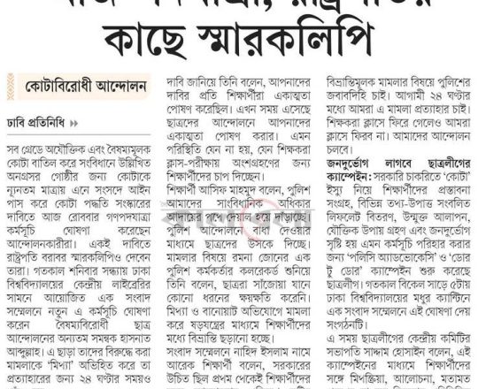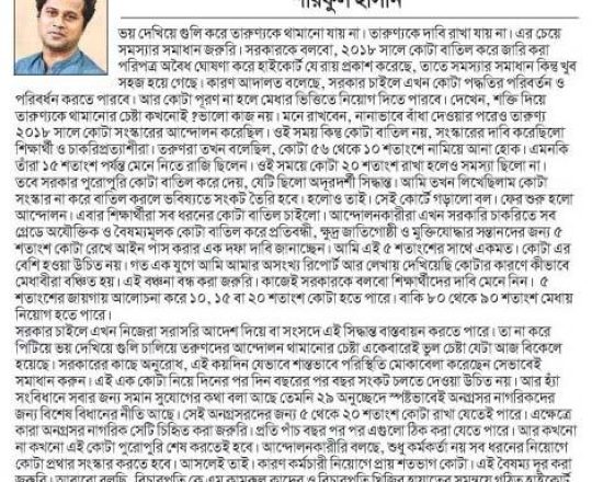 প্রথম আলো, ১৪ জুলাই ২০২৪, কোটাব্যবস্থা রাখাটাই অযৌক্তিক