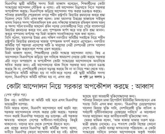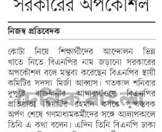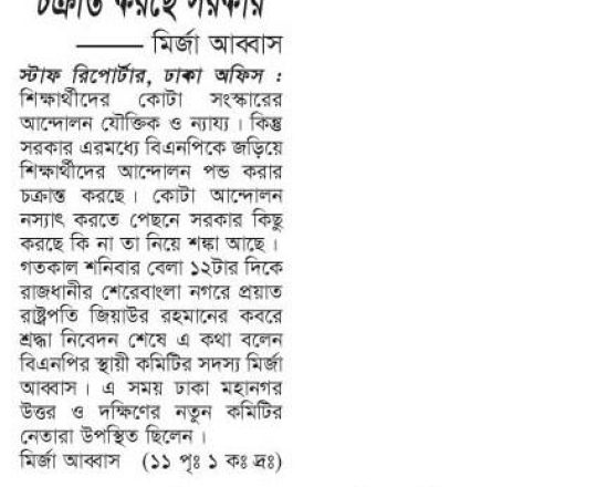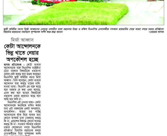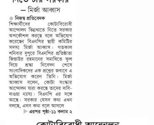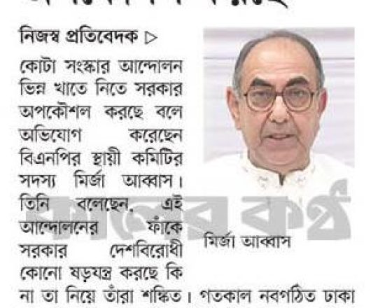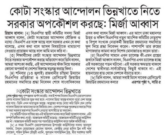 আমাদেরনতুন সময়, ১৪ জুলাই ২০২৪, কোটা সংস্কার আন্দোলন ভিন্নখাতে নিতে সরকার অপকৌশল করছে: মির্জা আব্বাস