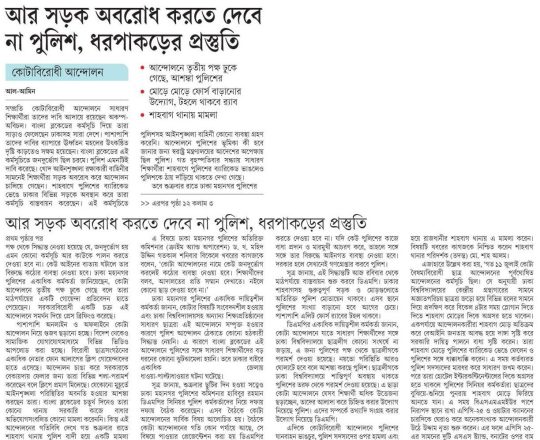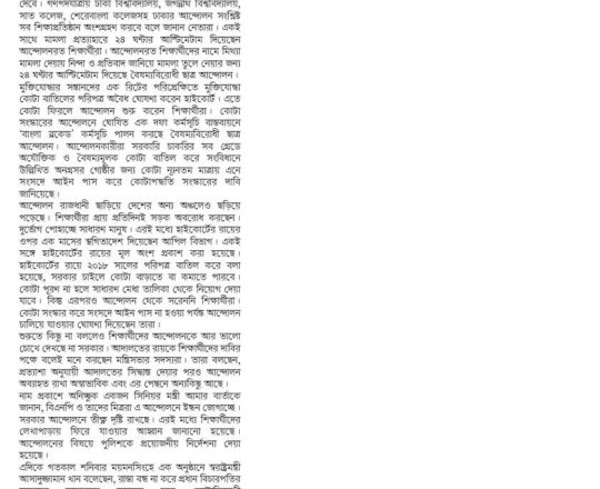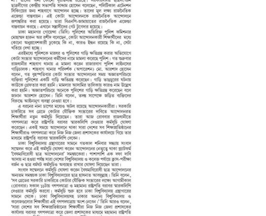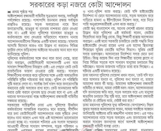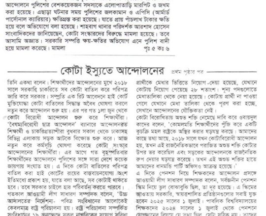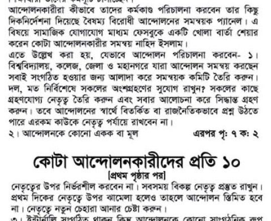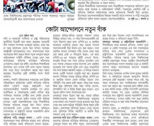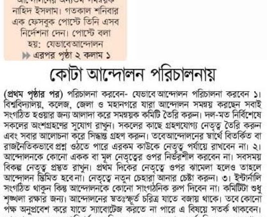 ভোরের পাতা, ১৪ জুলাই ২০২৪, কোটা আন্দোলন পরিচালনায় নতুন দশ নির্দেশনা