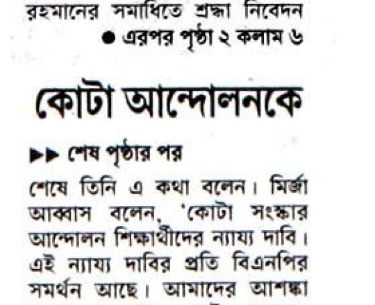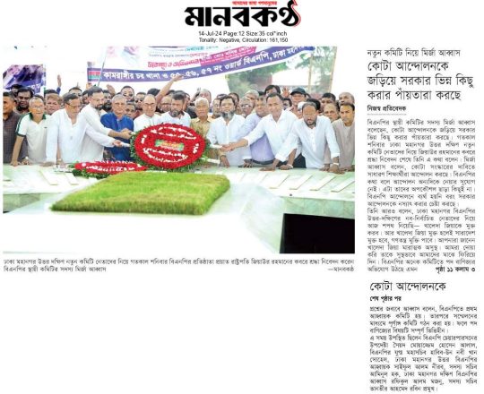 স্বদেশ প্রতিদিন, ১৪ জুলাই ২০২৪, কোটাবিরোধী আন্দোলন ভিন্নখাতে নিতে চায় সরকার- মির্জা আব্বাস