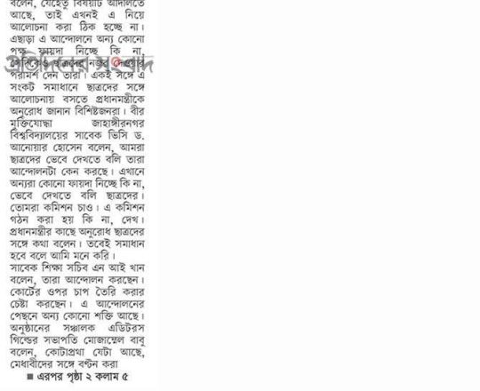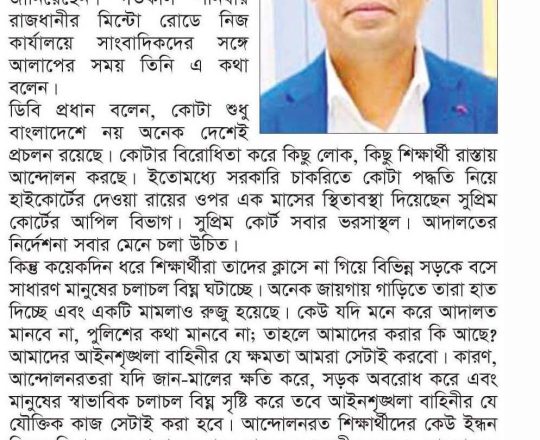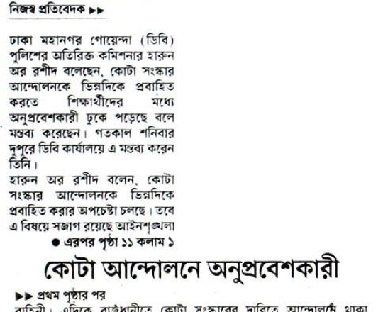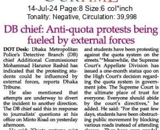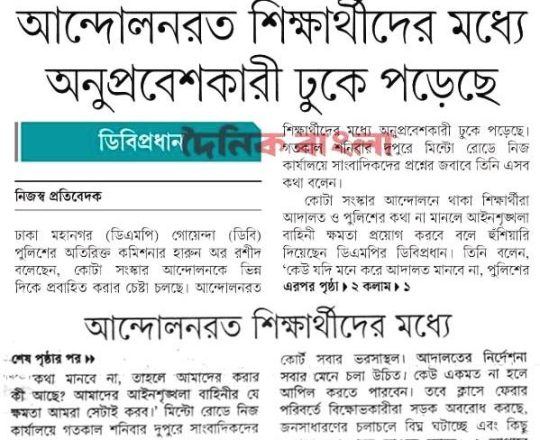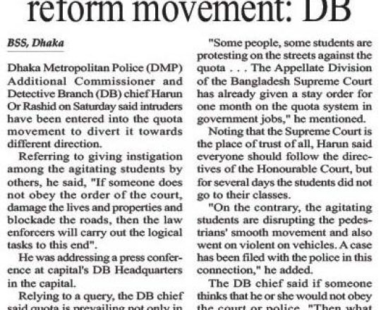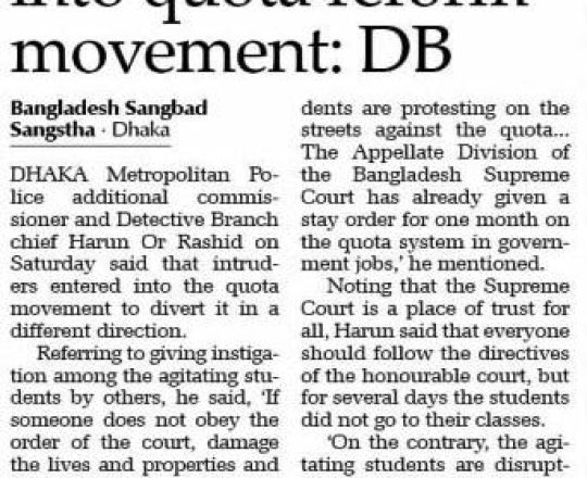 Bangladesh Post, 14 july 2024, Intruders enter into quota reform movement: DB