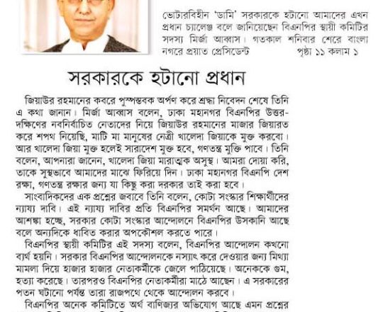 আজকালের খবর, ১৪ জুলাই ২০২৪, কোটা সংস্কার আন্দোলন ভিন্নখাতে নিতে সরকার অপকৌশল করছে -মির্জা আব্বাস