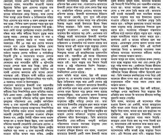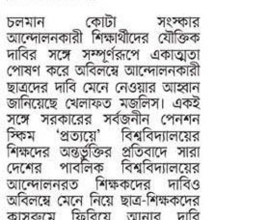 বাংলাদেশ প্রতিদিন, ১৪ জুলাই ২০২৪, আন্দোলনরত শিক্ষার্থী ও শিক্ষকদের দাবি মানতে হবে: খেলাফত মজলিস