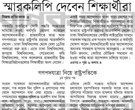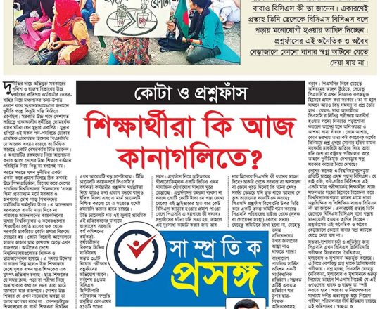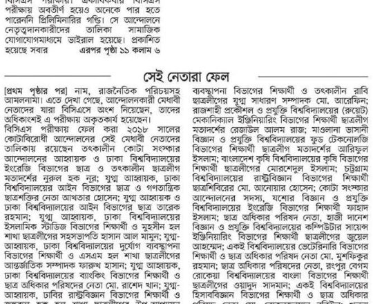 বাংলাদেশ প্রতিদিন, ১৪ জুলাই ২০২৪, সেই নেতারা ফেল বিসিএস পরীক্ষায়