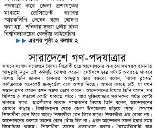 বাংলাদেশের আলো, ১৪ জুলাই ২০২৪, সারাদেশে গণ-পদযাত্রার ঘোষণা