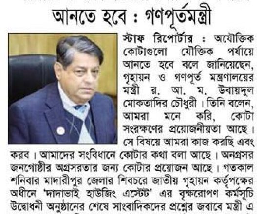 বাংলাদেশের আলো, ১৪ জুলাই ২০২৪, অযৌক্তিক কোটাগুলো যৌক্তিক পর্যায়ে আনা দরকার -গণপূর্ত মন্ত্রী
