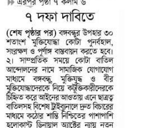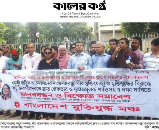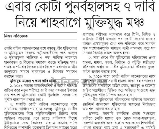 ভোরের পাতা, ১৪ জুলাই ২০২৪, ৭ দফা দাবিতে শাহবাগে মুক্তিযুদ্ধ মঞ্চ