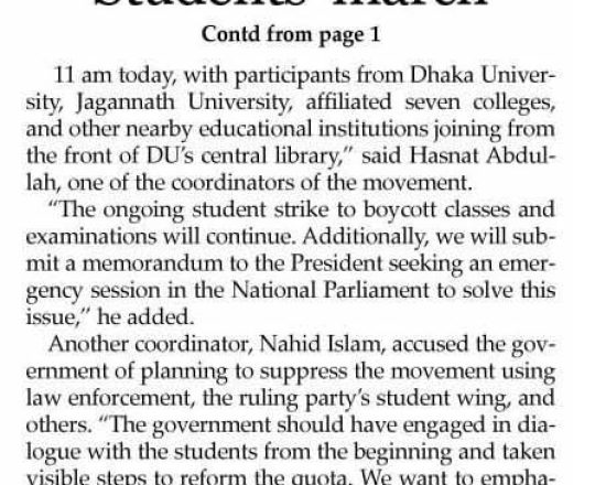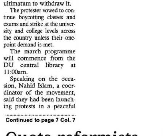 Asian Age, 14 july 2024, Quota protesters plan march to Bangabhaban today