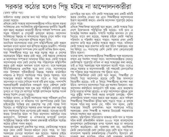 প্রথম আলো, ১৪ জুলাই ২০২৪, সরকারের উচিত দ্রুত সমাধান করা