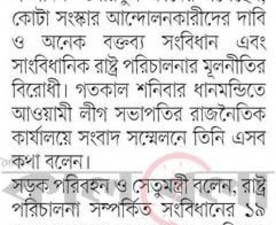 বাংলাদেশ প্রতিদিন, ১৪ জুলাই ২০২৪, কোটাবিরোধীদের সংবিধানবিরোধী দাবি: কাদের