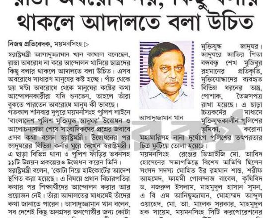 দৈনিক সংগ্রাম, ১৪ জুলাই ২০২৪, রাস্তা বন্ধ না করে আদালতে এসে কথা বলুন