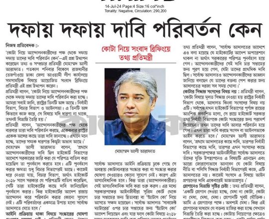 প্রতিদিনের বাংলাদেশ, ১৪ জুলাই ২০২৪, দাবি বারবার পরিবর্তন কেন, প্রশ্ন তথ্য প্রতিমন্ত্রীর