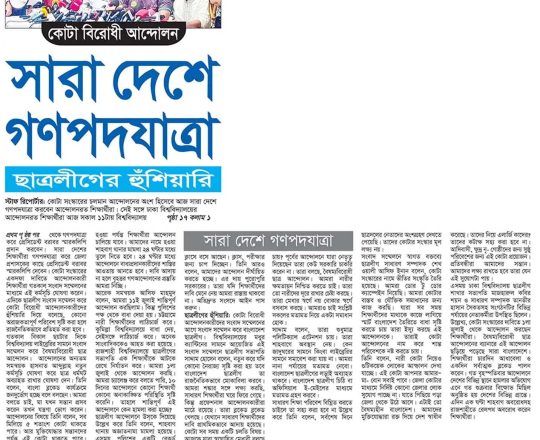 ভোরের পাতা, ১৪ জুলাই ২০২৪, কোটা নিয়ে নতুন কর্মসূচি দিল ছাত্রলীগ
