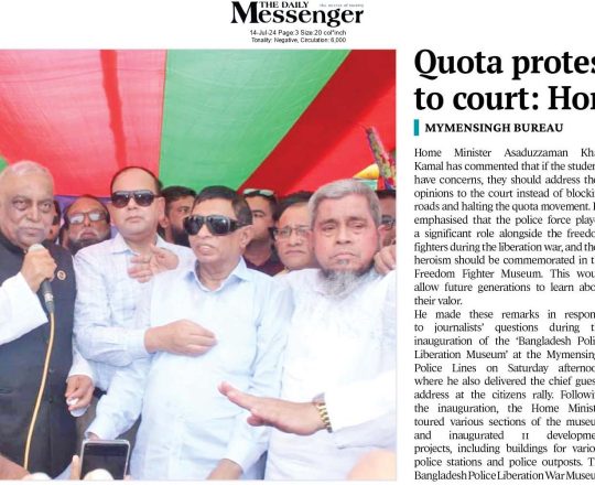 বাংলাদেশ প্রতিদিন, ১৪ জুলাই ২০২৪, আন্দোলন থামানো উচিত : স্বরাষ্ট্রমন্ত্রী