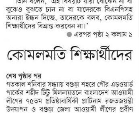প্রতিদিনের বাংলাদেশ, ১৪ জুলাই ২০২৪, কোমলমতি শিক্ষার্থীদের বিভ্রান্ত করবেন না