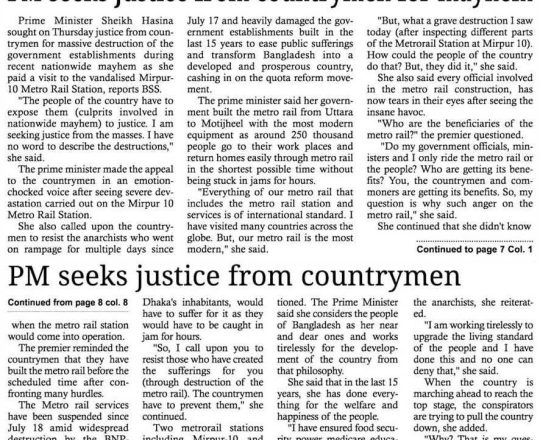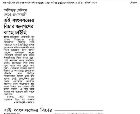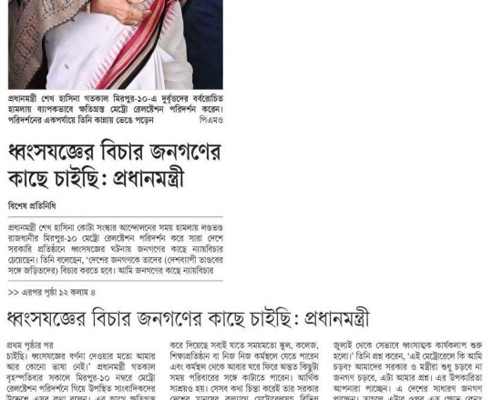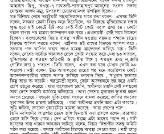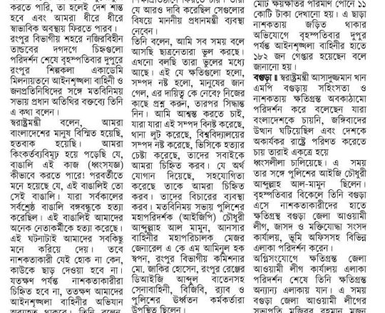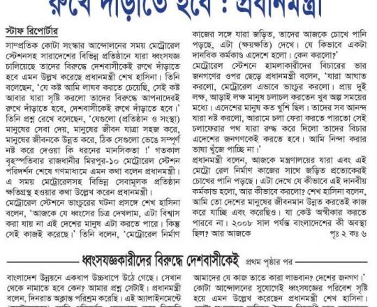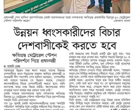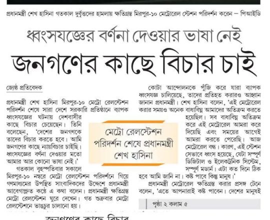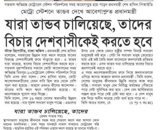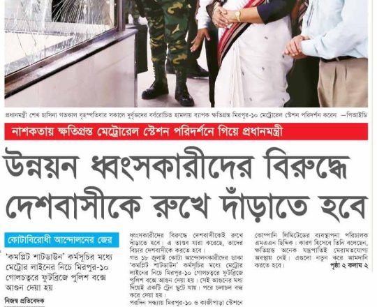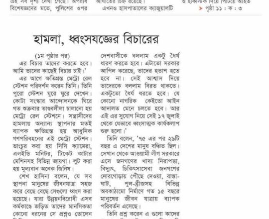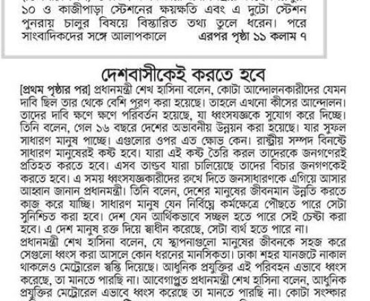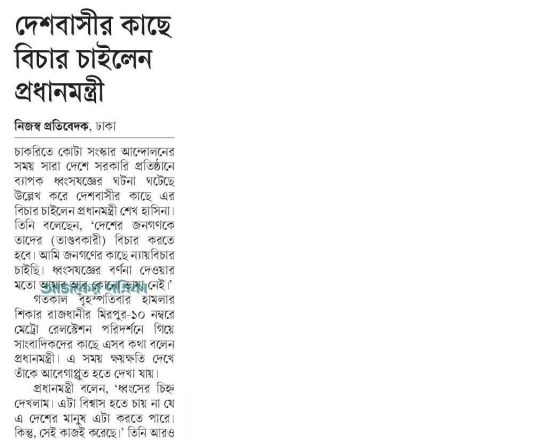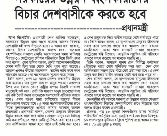 সংগ্রাম, ২৬ জুলাই ২০২৪, সরকারের উন্নয়ন ধ্বংসকারীদের বিচার দেশবাসীকে করতে হবে -প্রধানমন্ত্রী