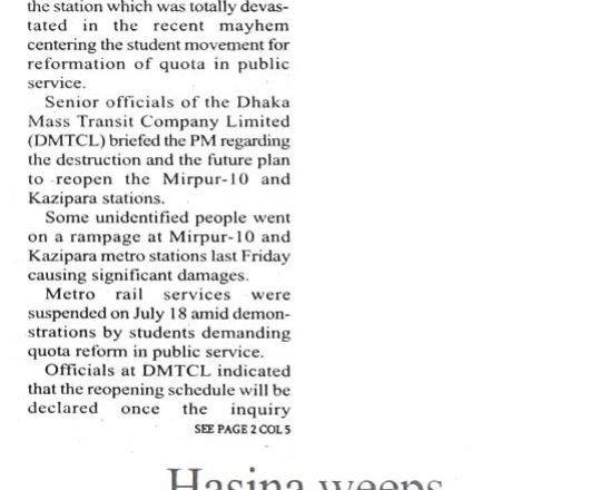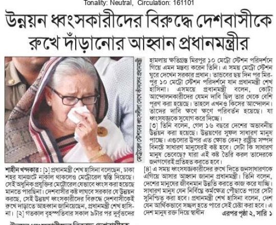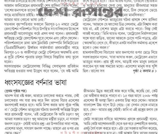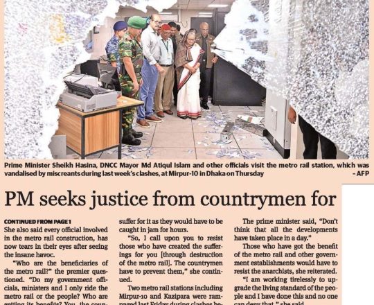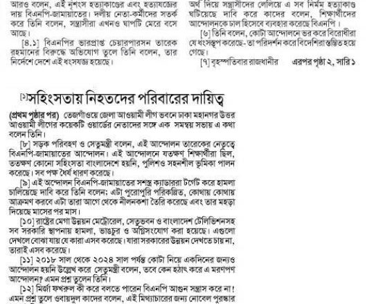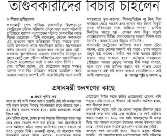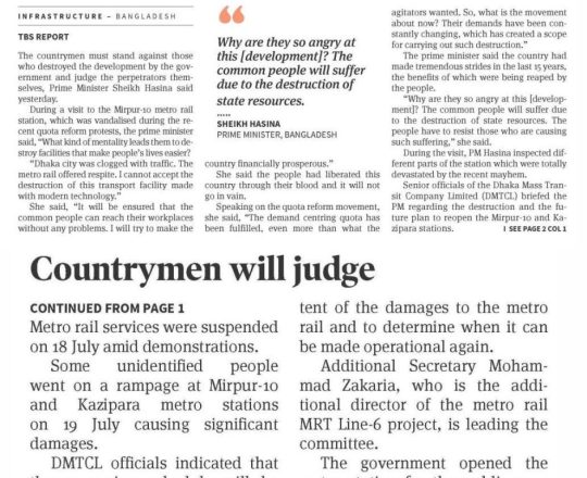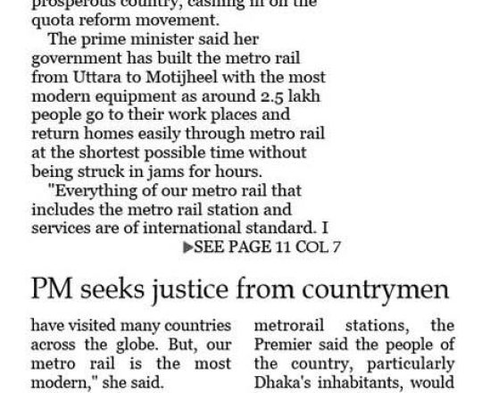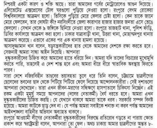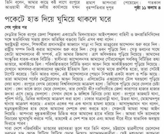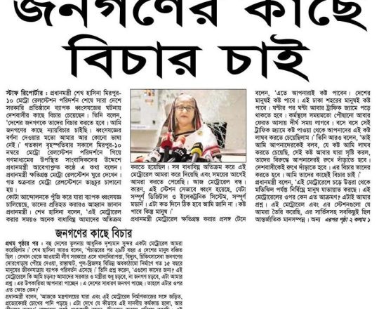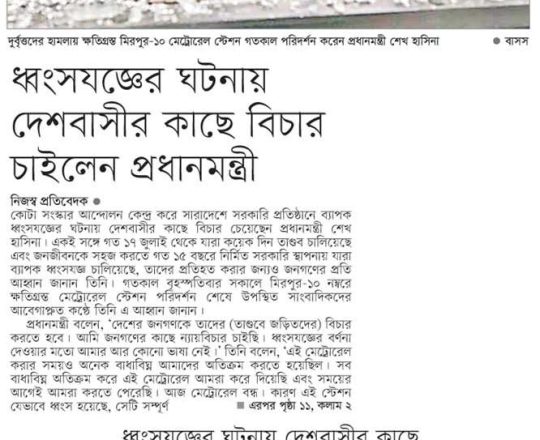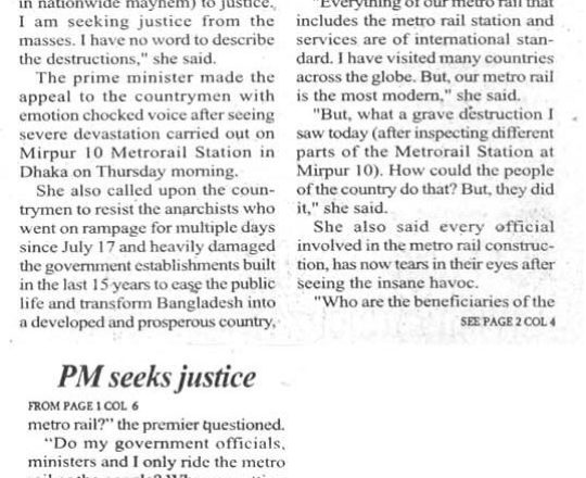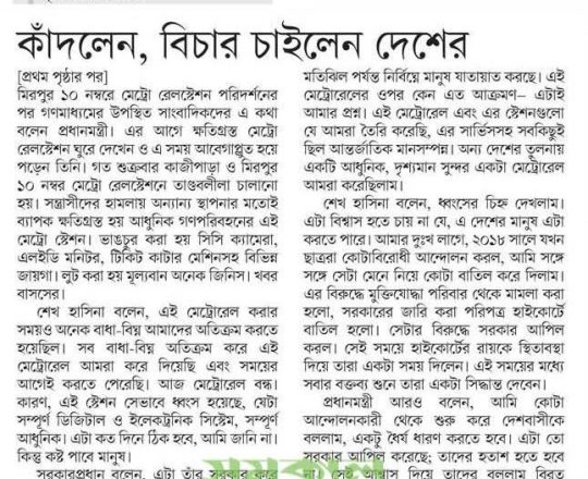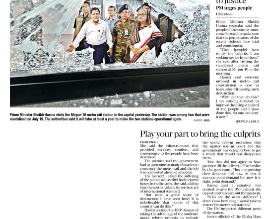 সংগ্রাম, ২৬ জুলাই ২০২৪, সরকারের উন্নয়ন ধ্বংসকারীদের বিচার দেশবাসীকে করতে হবে -প্রধানমন্ত্রী