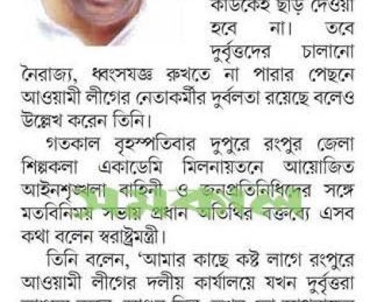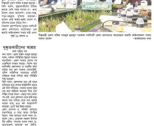 আজকালের খবর, ২৬ জুলাই ২০২৪, দুষ্কৃতকারীদের আশ্রয় প্রশ্রয় না দিয়ে পুলিশে দিন: শিল্পমন্ত্রী