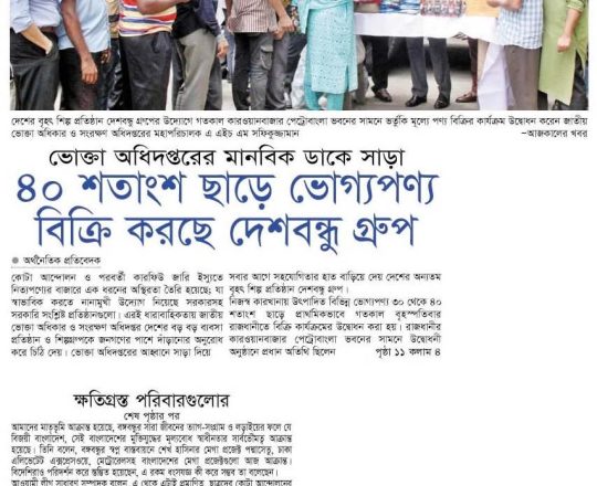 আজকালের খবর, ২৬ জুলাই ২০২৪, ৪০ শতাংশ ছাড়ে ভোগ্যপণ্য বিক্রি করছে দেশবন্ধু গ্রুপ