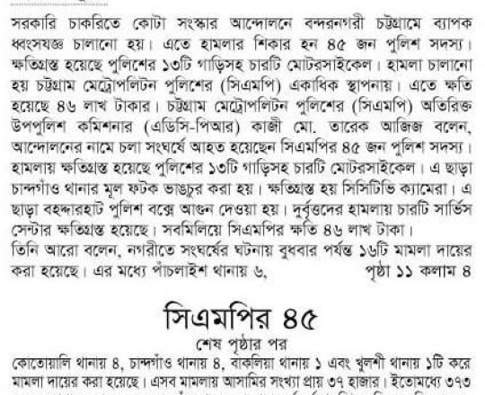 আজকালের খবর, ২৬ জুলাই ২০২৪, সিএমপির ৪৫ পুলিশ সদস্য আহত, ক্ষতি ৪৬ লাখ টাকা