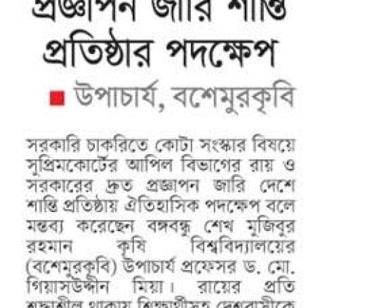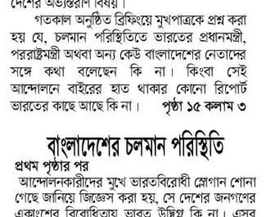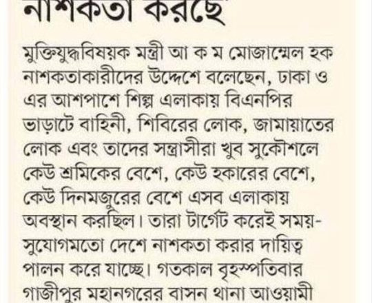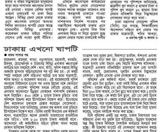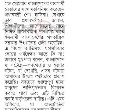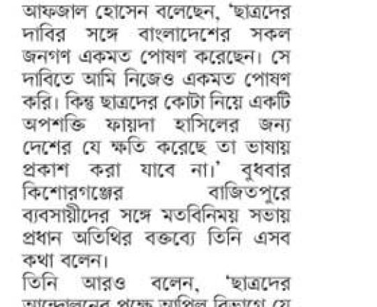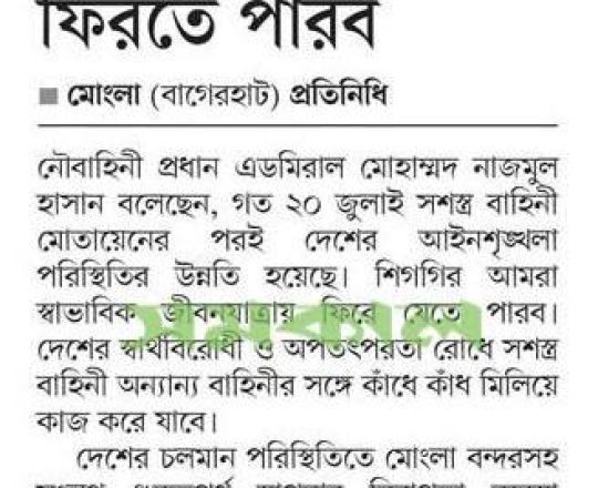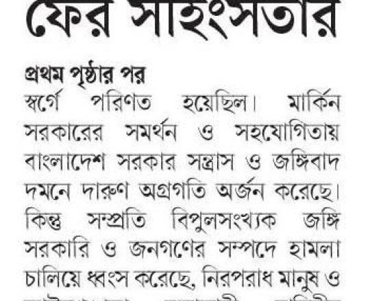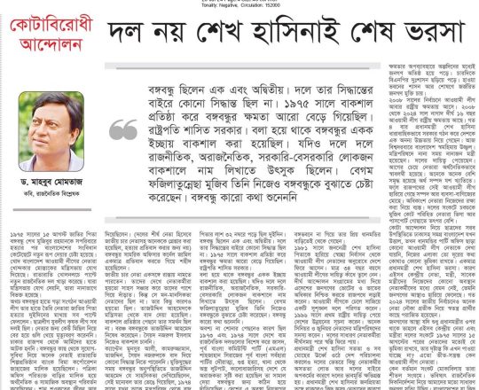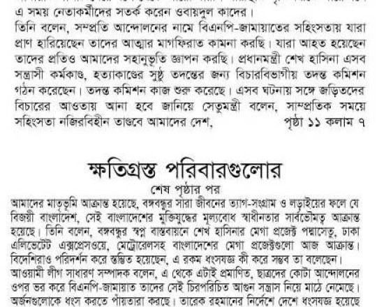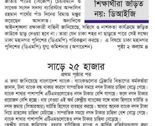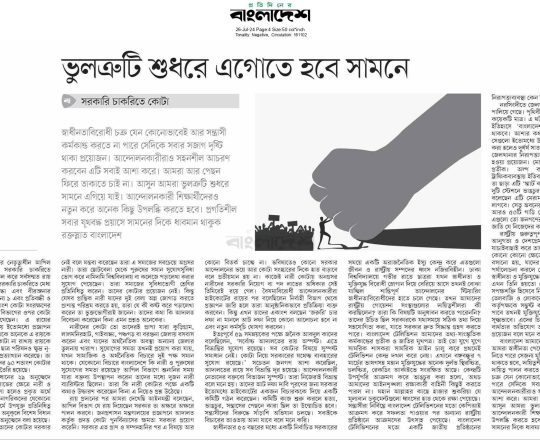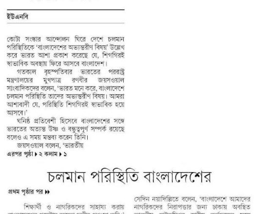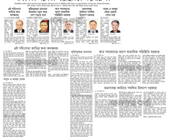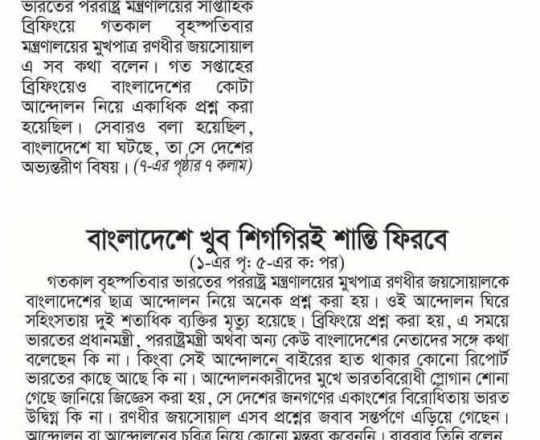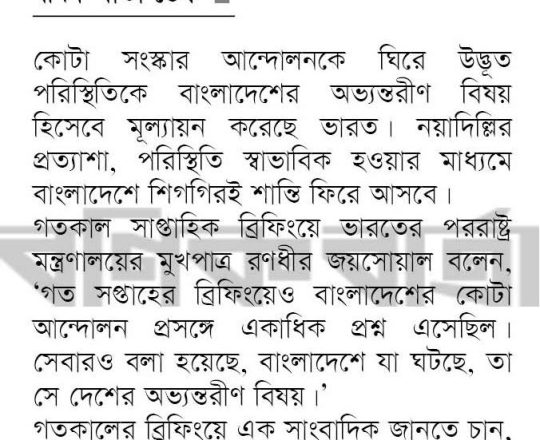 সংগ্রাম, ২৬ জুলাই ২০২৪, বাংলাদেশে খুব শিগগিরই শান্তি ফিরবে