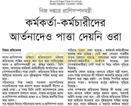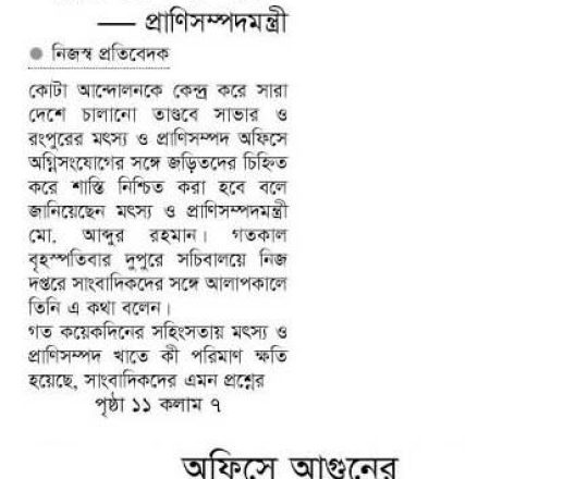 আজকালের খবর, ২৬ জুলাই ২০২৪, অফিসে আগুনের ঘটনায় জড়িতদের শাস্তি দেওয়া হবে-প্রাণিসম্পদমন্ত্রী