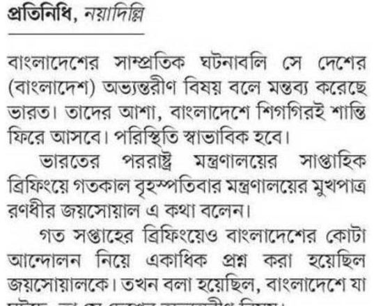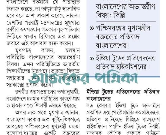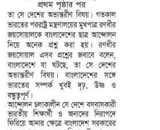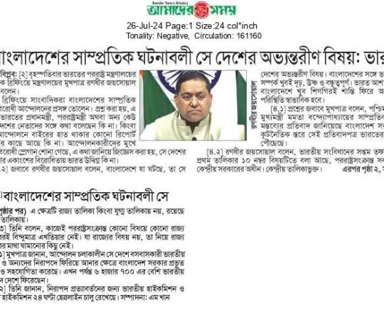 আজকালের খবর, ২৬ জুলাই ২০২৪, বাংলাদেশে খুব শিগগিরই শান্তি ফিরবে: দিল্লি