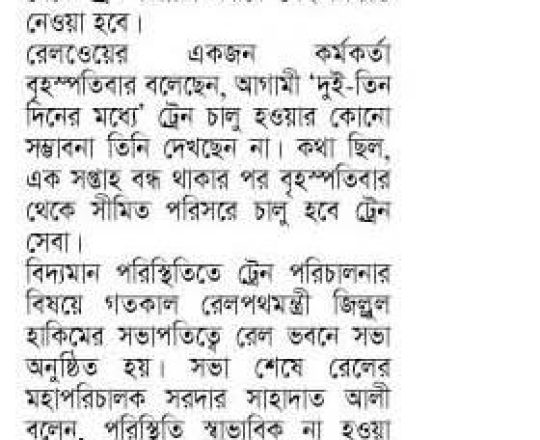 আজকালের খবর, ২৬ জুলাই ২০২৪, ট্রেন চলাচলের সিদ্ধান্ত এখনো হয়নি