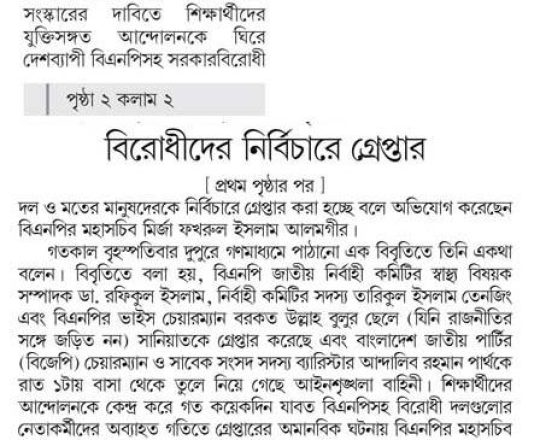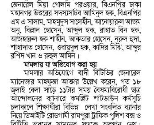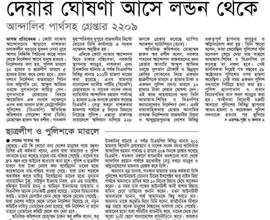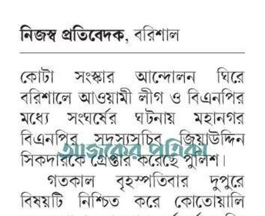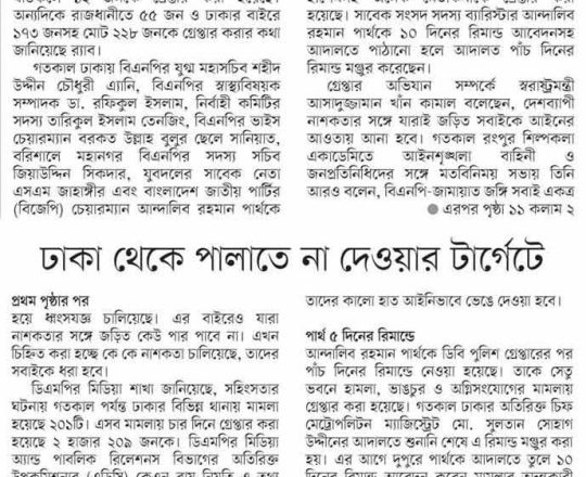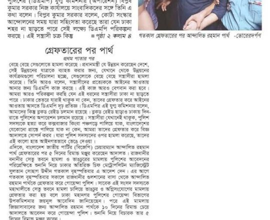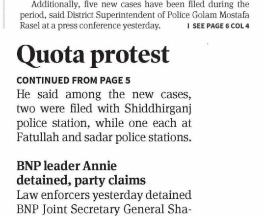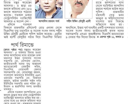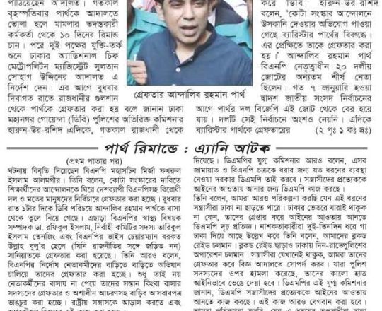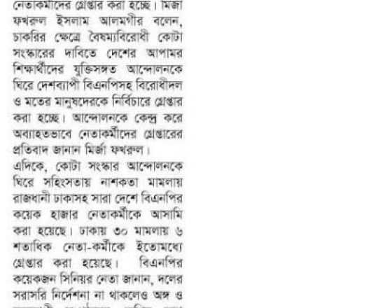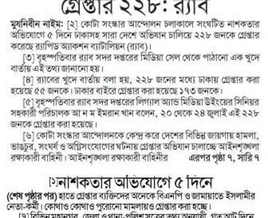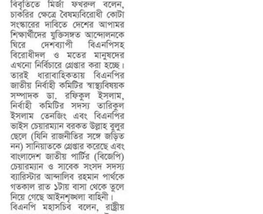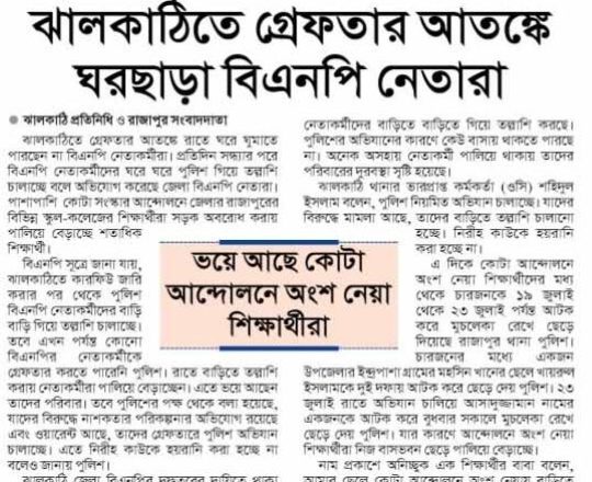 আজকের পত্রিকা, ২৬ জুলাই ২০২৪, বিএনপির সদস্যসচিব জিয়া গ্রেপ্তার