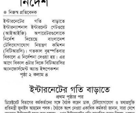 আজকালের খবর, ২৬ জুলাই ২০২৪, ইন্টারনেটের গতি বাড়াতে বিটিআরসির নির্দেশ