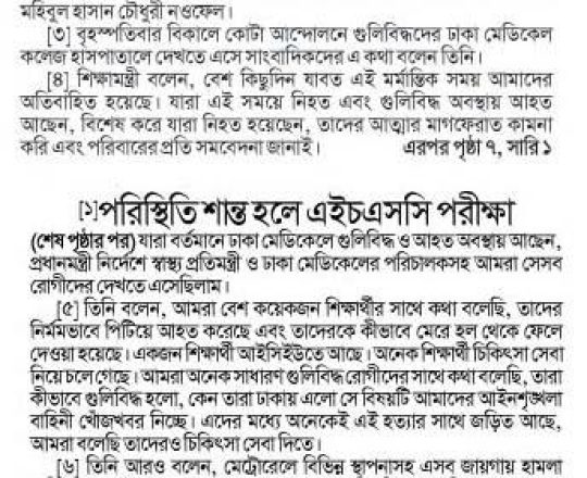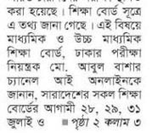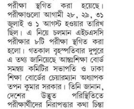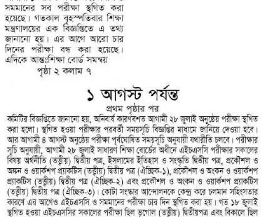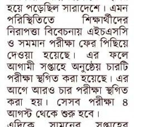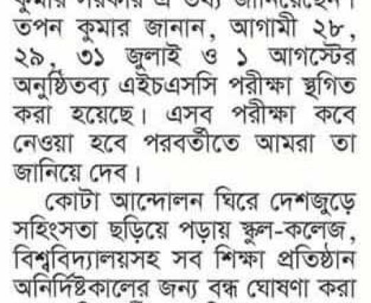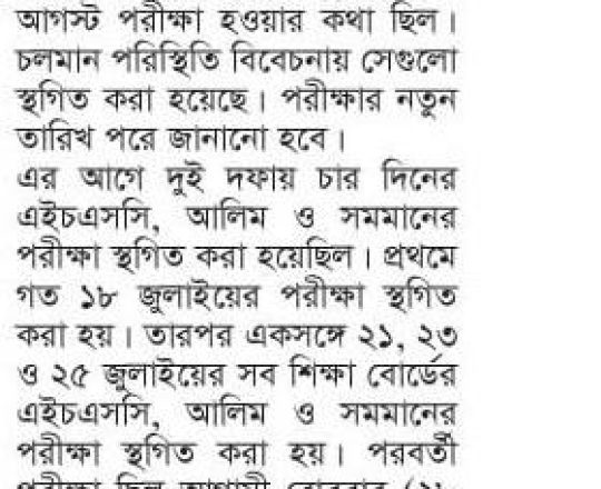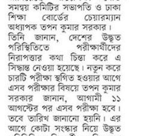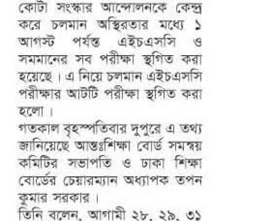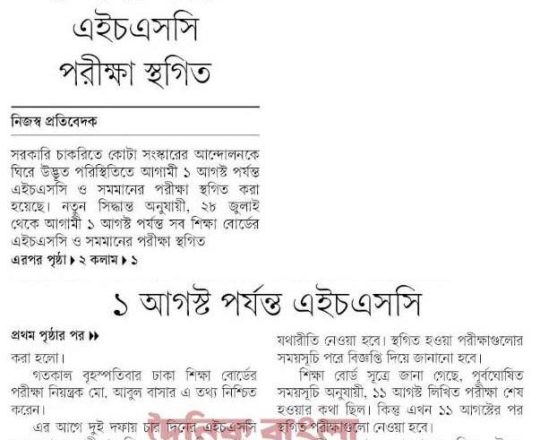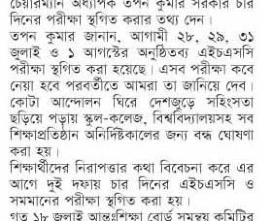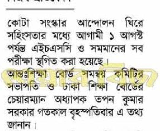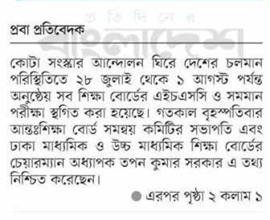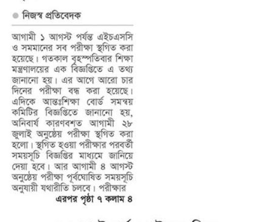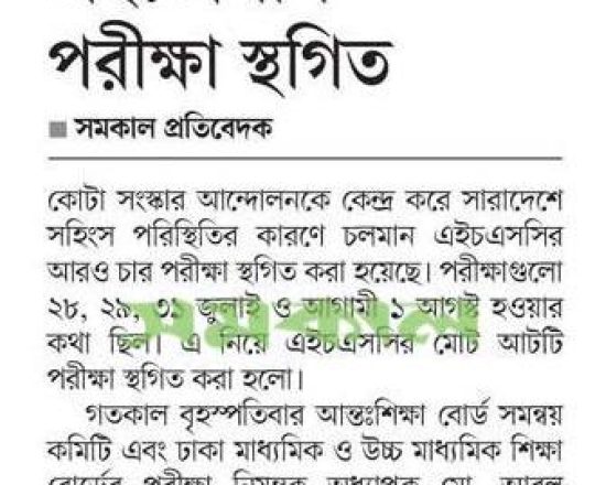 সংগ্রাম, ২৬ জুলাই ২০২৪, ১ আগস্ট পর্যন্ত এইচএসসির সব পরীক্ষা স্থগিত