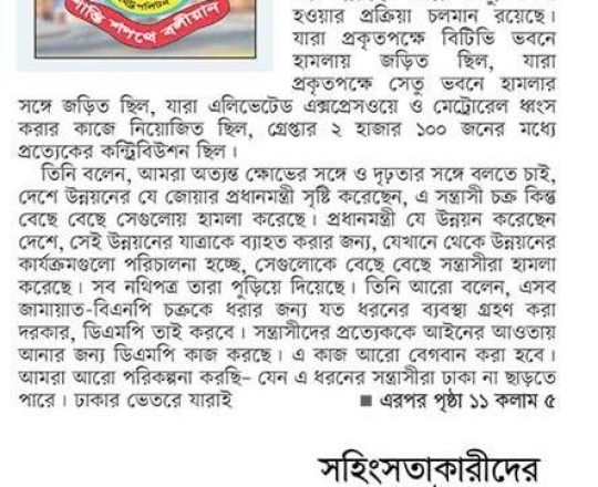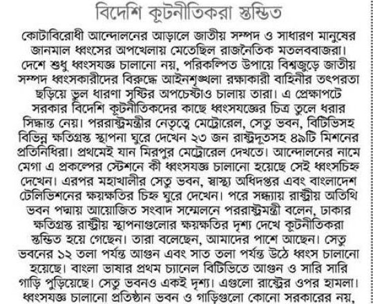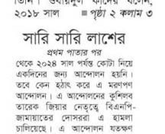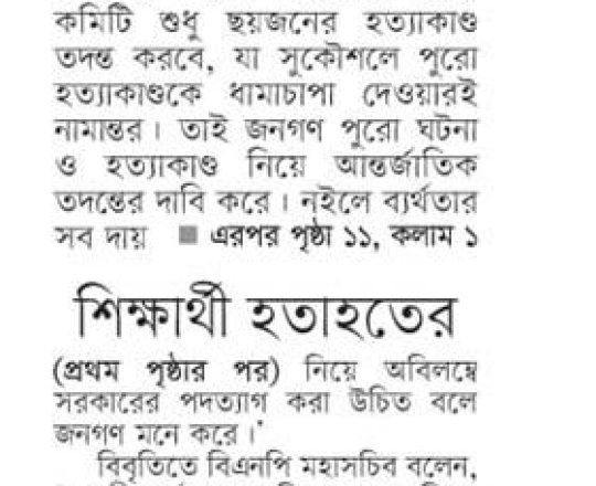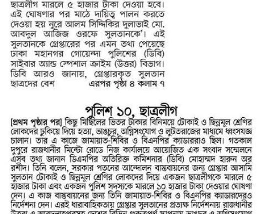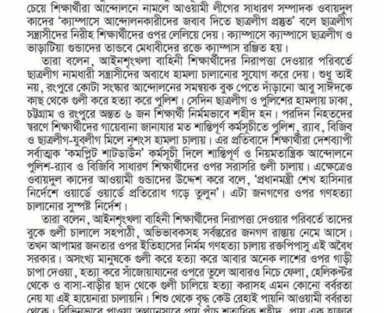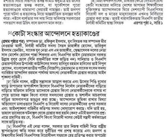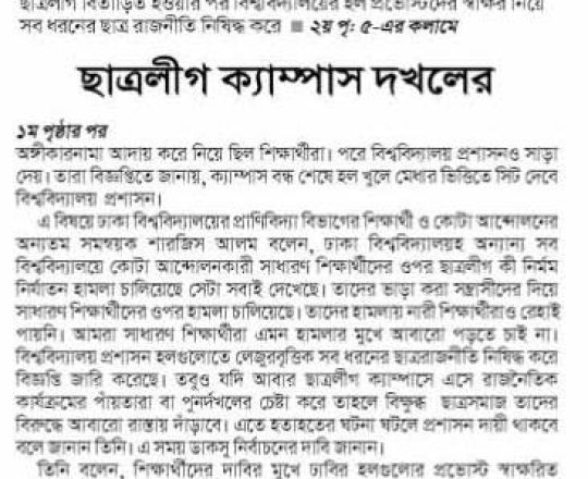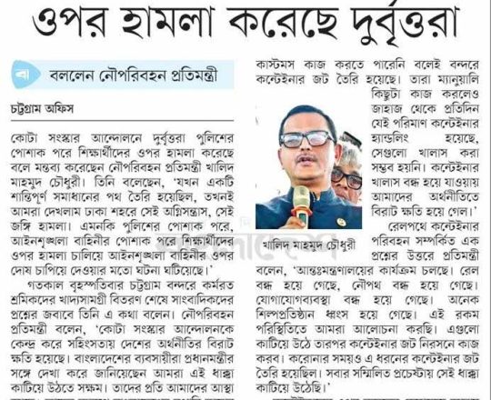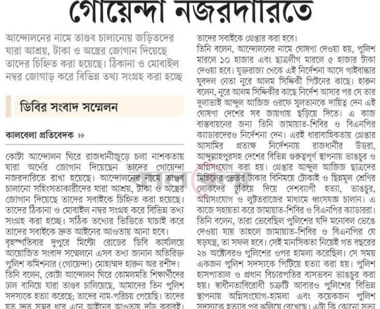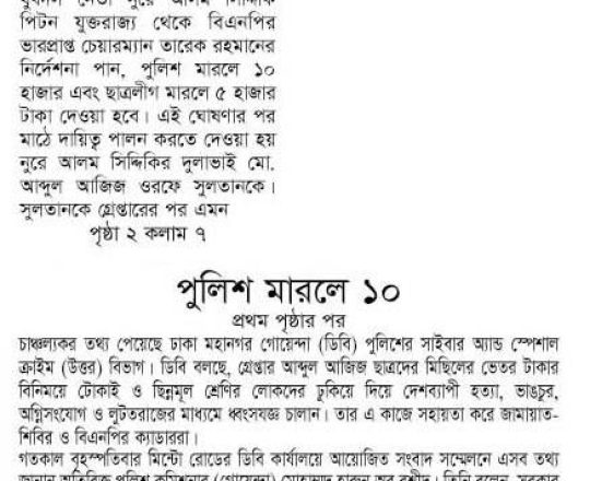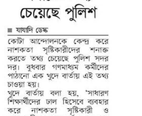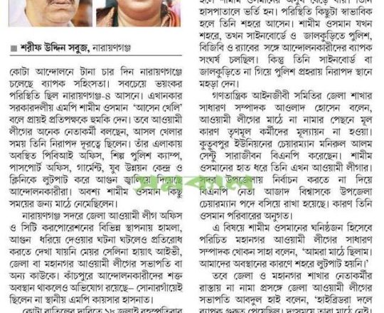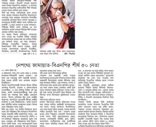 সংগ্রাম, ২৬ জুলাই ২০২৪, সরকার গণহত্যার দায় এড়াতে ছাত্রশিবিরকে জড়িয়ে মিথ্যা প্রোপাগান্ডা ছড়াচ্ছে -ছাত্রশিবির