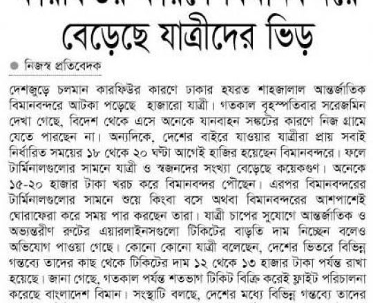 আজকালের খবর, ২৬ জুলাই ২০২৪, কারফিউর কারণে বিমানবন্দরে বেড়েছে যাত্রীদের ভিড়