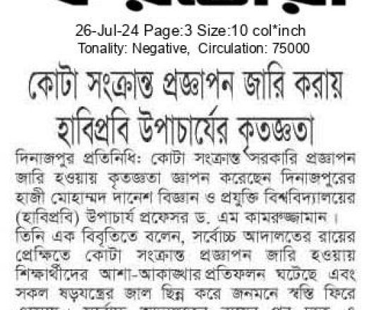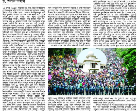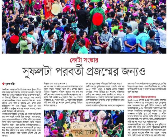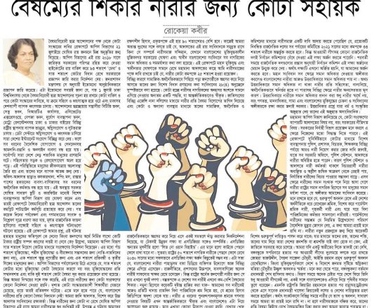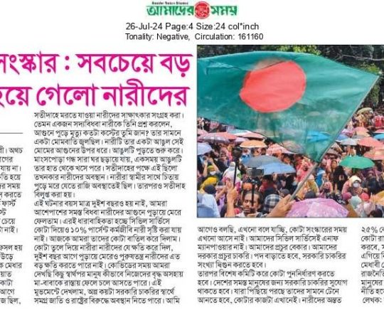 আজকালের খবর, ২৬ জুলাই ২০২৪, বৈষম্যের শিকার নারীর জন্য কোটা সহায়ক