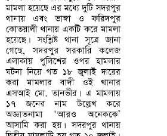 আজকালের খবর, ২৬ জুলাই ২০২৪, ফরিদপুরে ৪ মামলায় গ্রেপ্তার ৬৭
