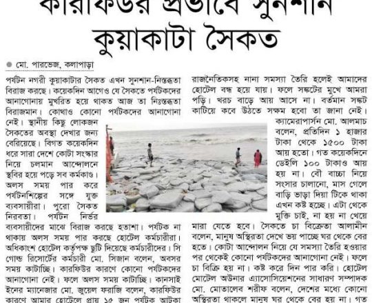 আজকালের খবর, ২৬ জুলাই ২০২৪, কারফিউর প্রভাবে সুনশান কুয়াকাটা সৈকত