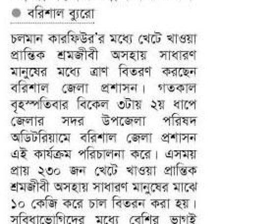 আজকালের খবর, ২৬ জুলাই ২০২৪, চলমান কারফিউর মধ্যে বরিশাল জেলা প্রশাসনের ত্রাণ বিতরণ