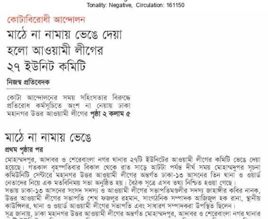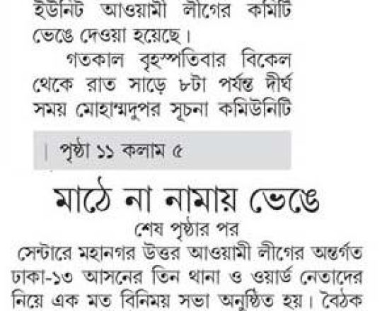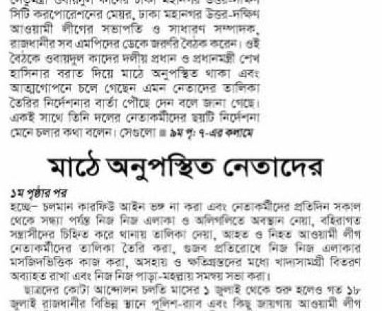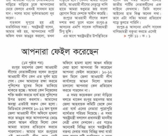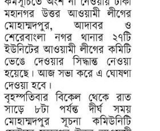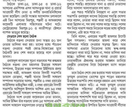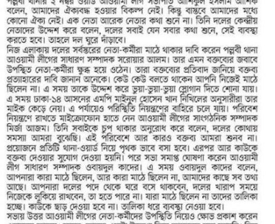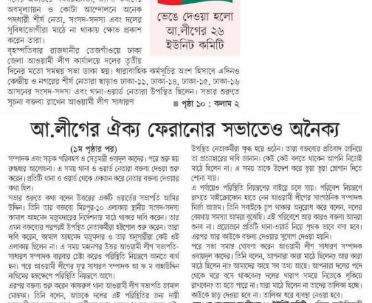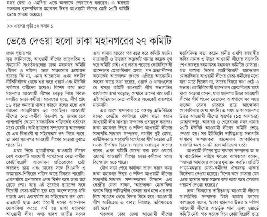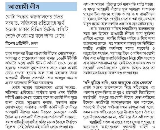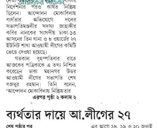 আজকের পত্রিকা, ২৬ জুলাই ২০২৪, ব্যর্থতার দায়ে আ.লীগের ২৭কমিটি বাতিল