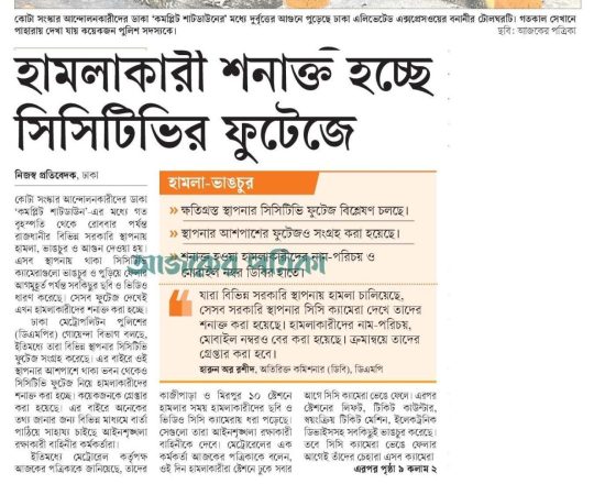 আজকের পত্রিকা, ২৬ জুলাই ২০২৪, হামলাকারী শনাক্ত হচ্ছে সিসিটিভির ফুটেজে