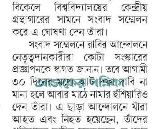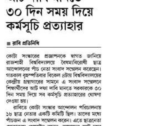 সময়ের আলো, ২৬ জুলাই ২০২৪, রাবিতে ছাত্র আন্দোলনের কর্মসূচি প্রত্যাহার