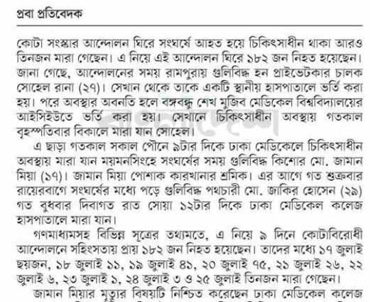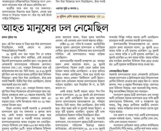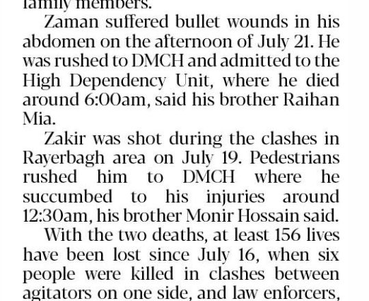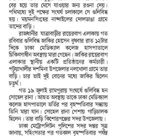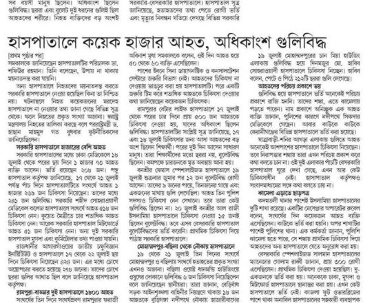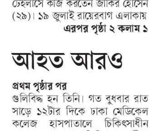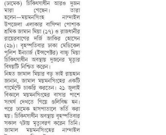 আজকের পত্রিকা, ২৬ জুলাই ২০২৪, আহত আরও তিনজন মারা গেছেন